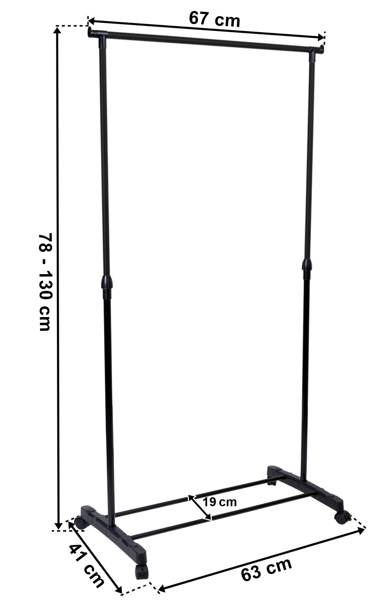 Praktyczny i wytrzymały wieszak garderobiany na kółkach. Wieszak BES sprawdzi się w każdym domu i w biurze, w którym brakuje miejsca do powieszenia odzieży. Nasz produkt został wyposażony w wytrzymały drążek, który pomieści naprawdę dużo odzieży. Dodatkowym atutem wieszaka są nakładki na końce drążka, uniemożliwiające zsunięcie się wieszaków z odzieżą. Montaż wieszaka jest niezwykle prosty i nie wymaga użycia narzędzi. Czarny kolor wieszaka sprawi, że doskonale wpisze się w każdy styl wnętrza, w szczególności glamour i loft.