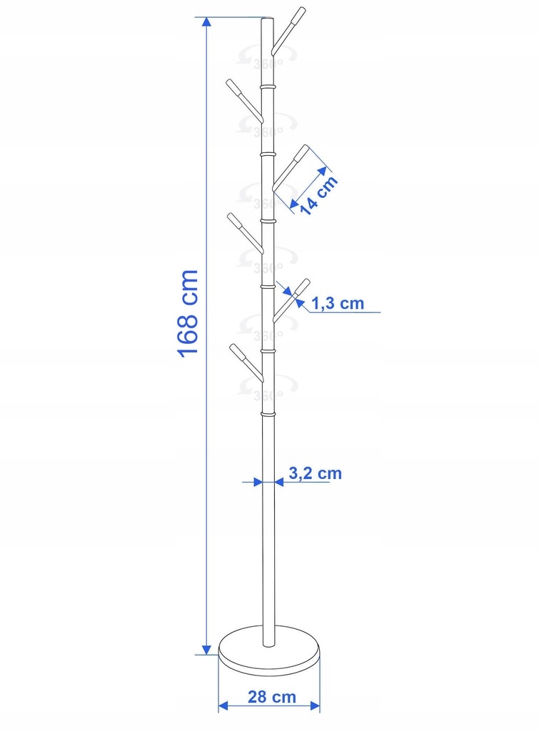 Duża okrągła podstawa gwarantuje stabilność i zwiększa wytrzymałość wieszaka. Dzięki niej na wieszaku możemy powiesić dużą ilość odzieży bez obaw o jego przewrócenie.