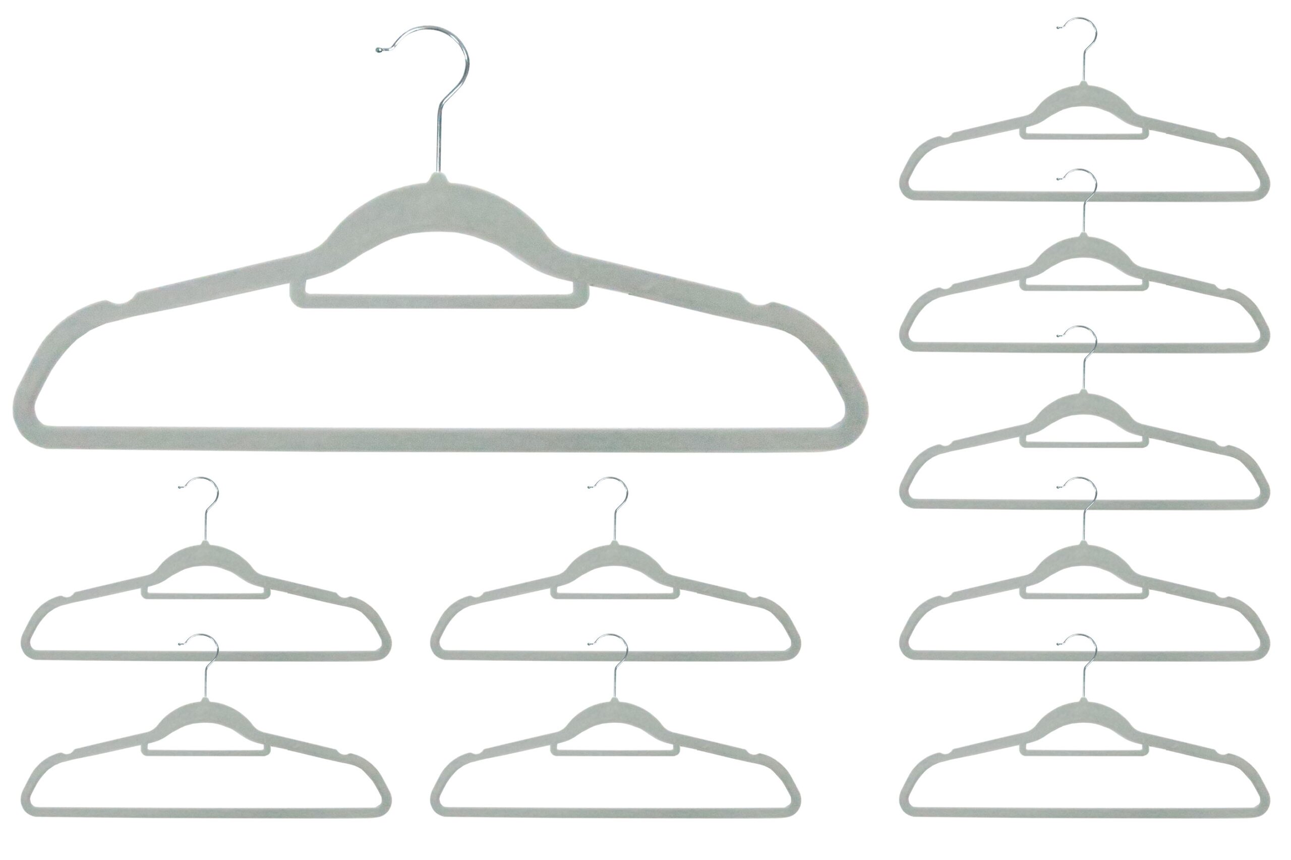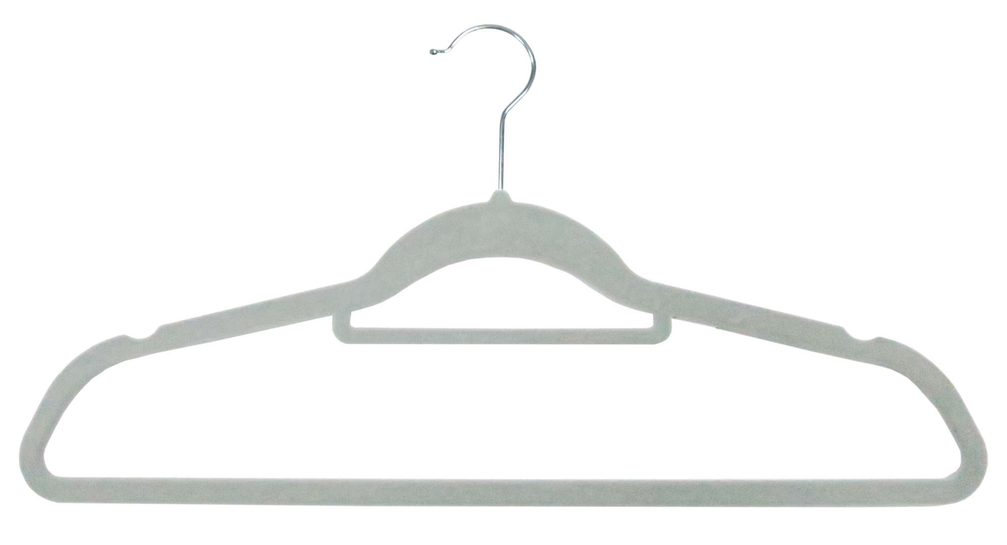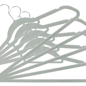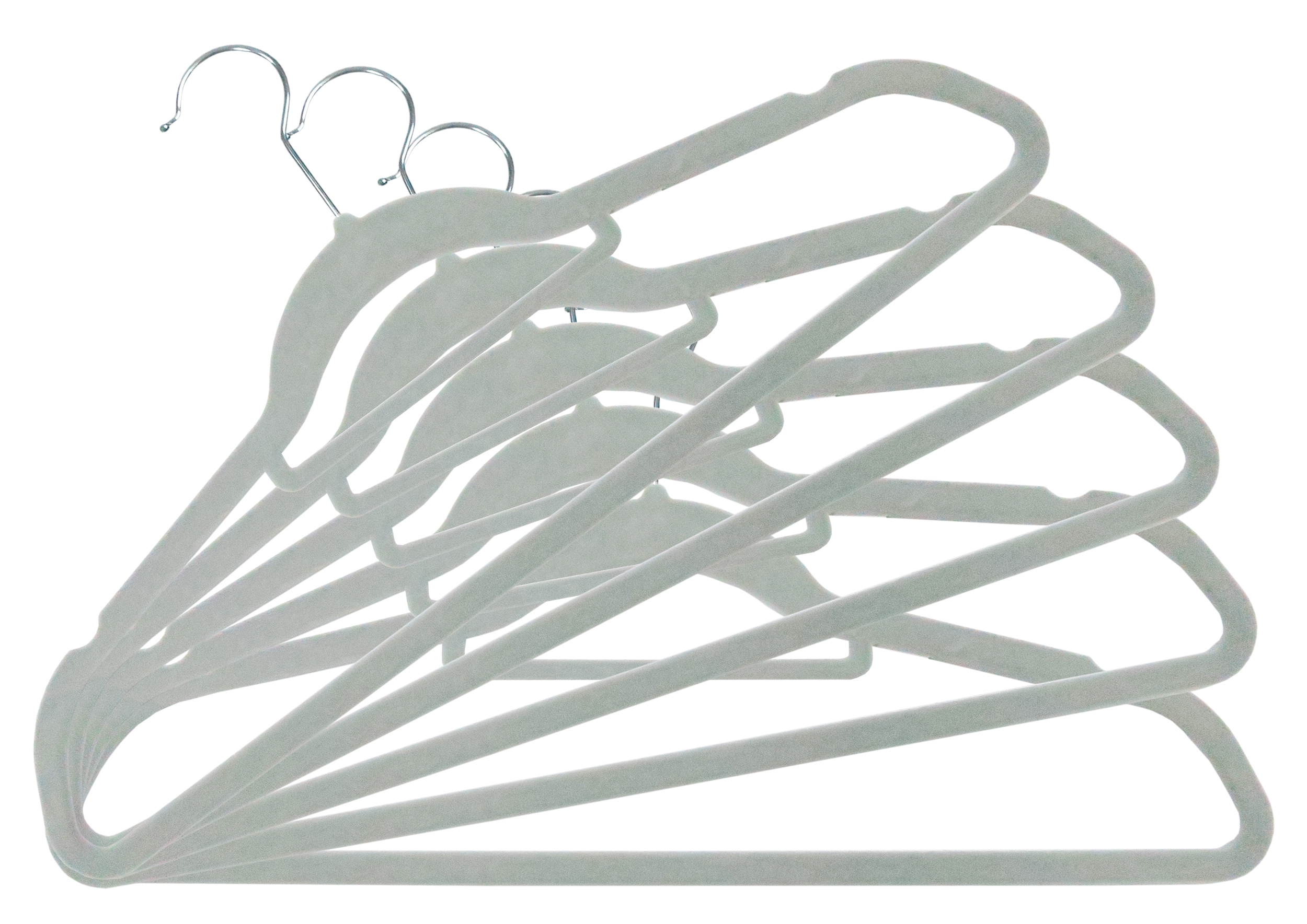 Komplet wieszaków aksamitnych. Flokowana powierzchnia czyni je bardzo praktycznymi, zapobiega bowiem zsuwaniu się ubrań. Wieszaki Maxi są odpowiednio profilowane, co pomaga uniknąć zagnieceń na odzieży.
