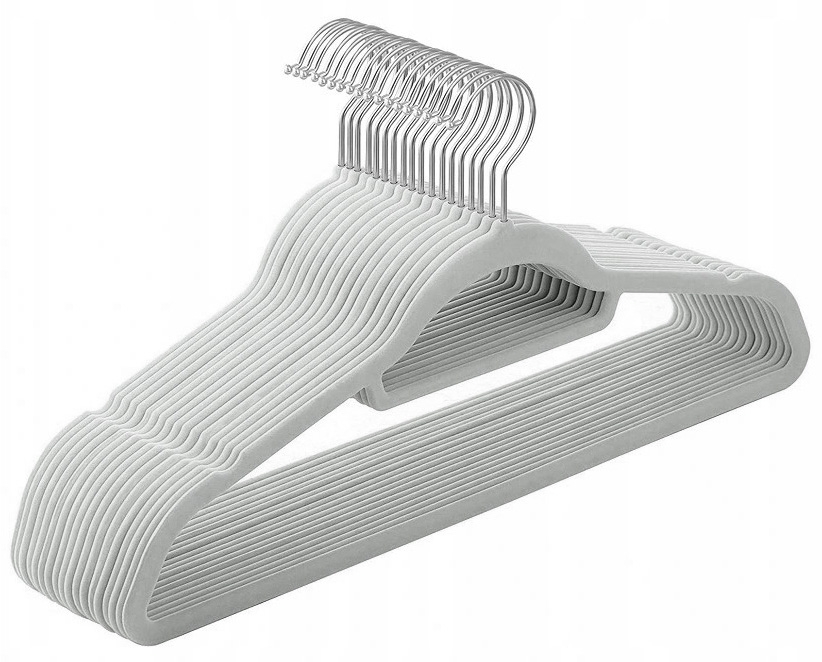 Wieszaki welurowe dzięki swojej konstrukcji zaoszczędzą sporo miejsca w Twojej garderobie czy szafie. Są cienkie i bardzo wytrzymałe. Dzięki nim zorganizujesz więcej miejsca na odzież.