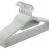 Wieszaki są wykonane z plastiku i w całości pokryte przyjemnym w dotyku welurem, dzięki czemu ubrania nie zsuwają się.
