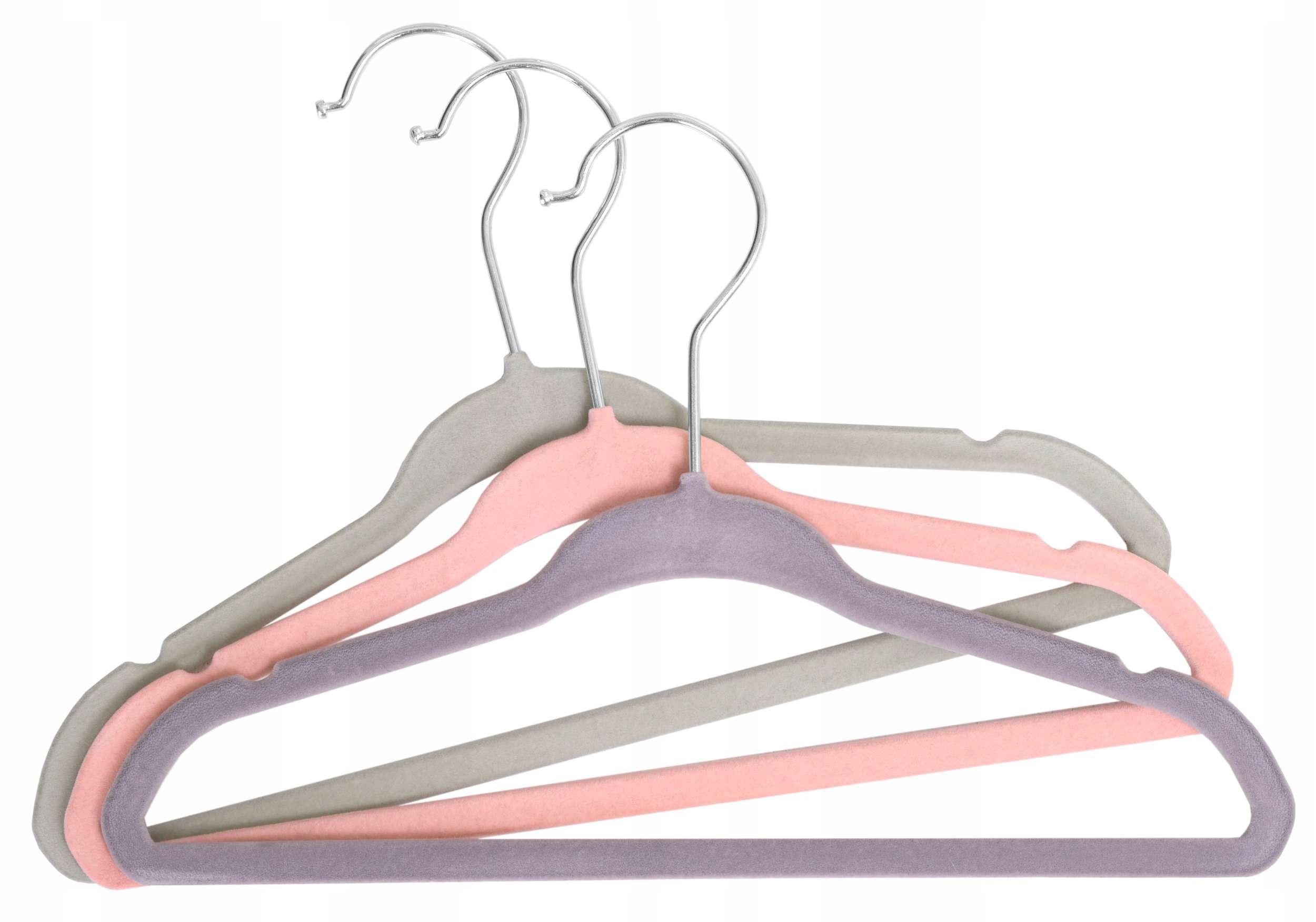Wieszaki welurowe idealne do szafy, garderoby czy też ekspozycji odzieży. Wieszaki wykonane są z plastiku, pokryte są w całości bardzo miłym w dotyku welurem . Ich aksamitna powierzchnia zapobiega zsuwaniu się ubrań, a właściwe wyprofilowanie sprawia, że tkaniny nie ulegają deformacji. Wieszaki posiadają metalowy haczyk.