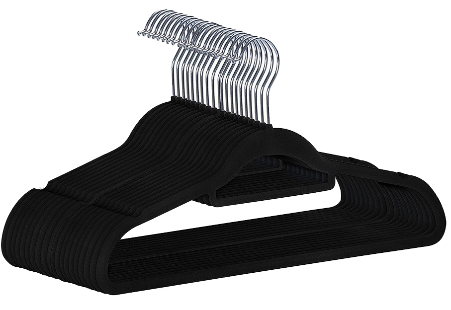 Wieszak welurowy na ubrania Maxi komplet 20 sztuk – czarny