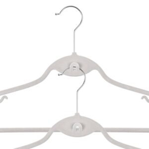 Wieszaki welurowe idealne do szafy, garderoby czy też ekspozycji odzieży. Wieszaki wykonane są z plastiku, pokryte są w całości bardzo miłym w dotyku welurem . Ich aksamitna powierzchnia zapobiega zsuwaniu się ubrań, a właściwe wyprofilowanie sprawia, że tkaniny nie ulegają deformacji. Wieszaki posiadają metalowy haczyk.