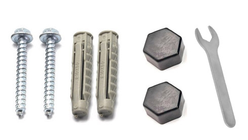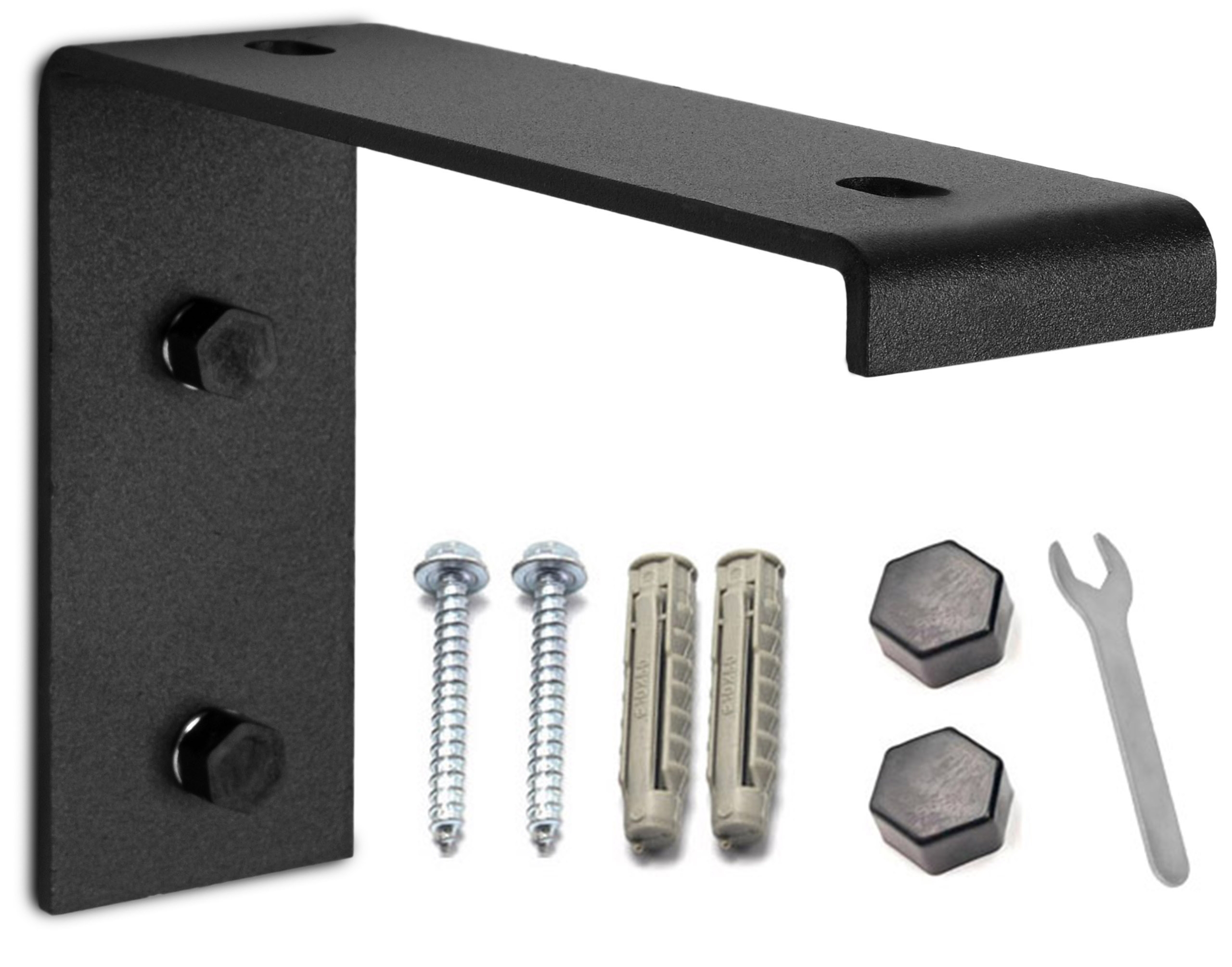 W zestawie: wspornik, 2x śruba mocująca, 2x kołek, 2x zaślepka, klucz