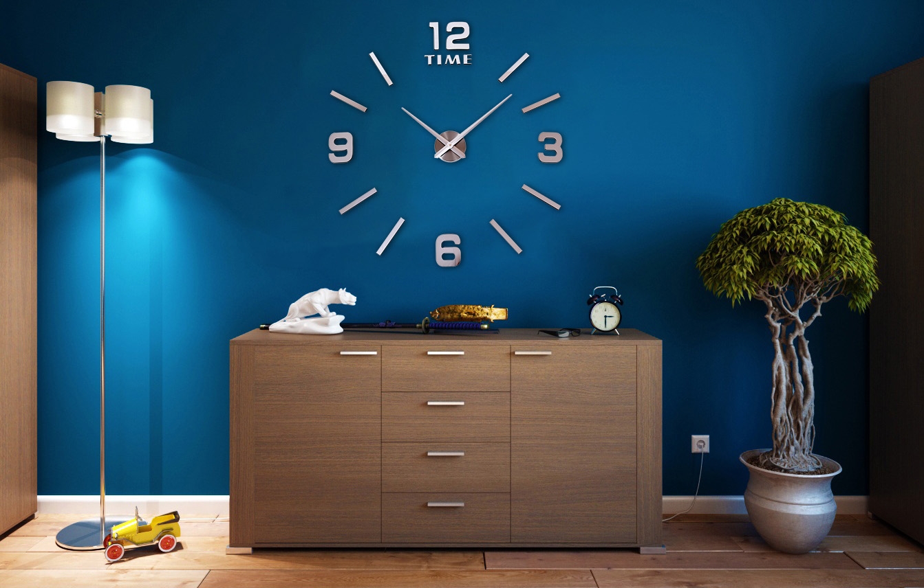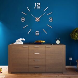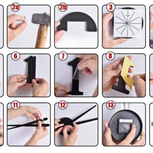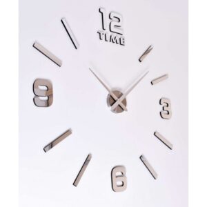 Nowoczesny zegar typu DIY – zrób to sam. Idealny dodatek do każdego salonu lub biura. Wielkość zegara zależy od Ciebie! Możesz mu nadać dowolną średnicę! Sugerujemy rozmiar 80-100 cm, wówczas zegar prezentuje się najlepiej. Zegar do przyklejenia na ścianie lub do innych gładkich powierzchni.