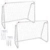 Specyfikacja: Stal malowana proszkowo jest materiałem stelaża, waga bramki wynosi 4 kg, w zestawie znajdują się 2 bramki, 8 szpilek, kolor biały. Zestaw zawiera metalowe profile, instrukcję w języku polskim, siatkę piłkarską, szpilki mocujące do podłoża, zestaw montażowy. Produkt jest zgodny z normą EN-71.