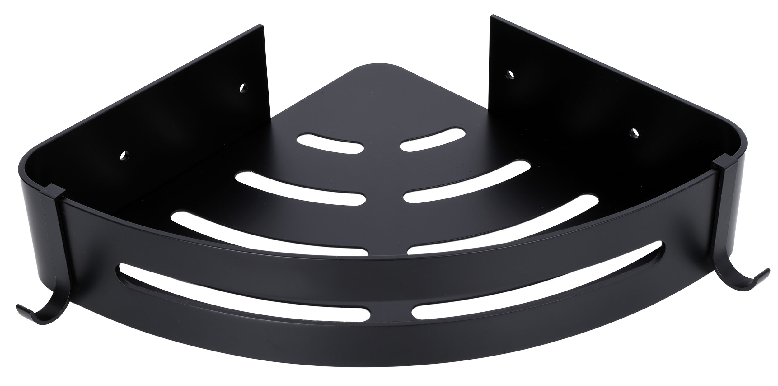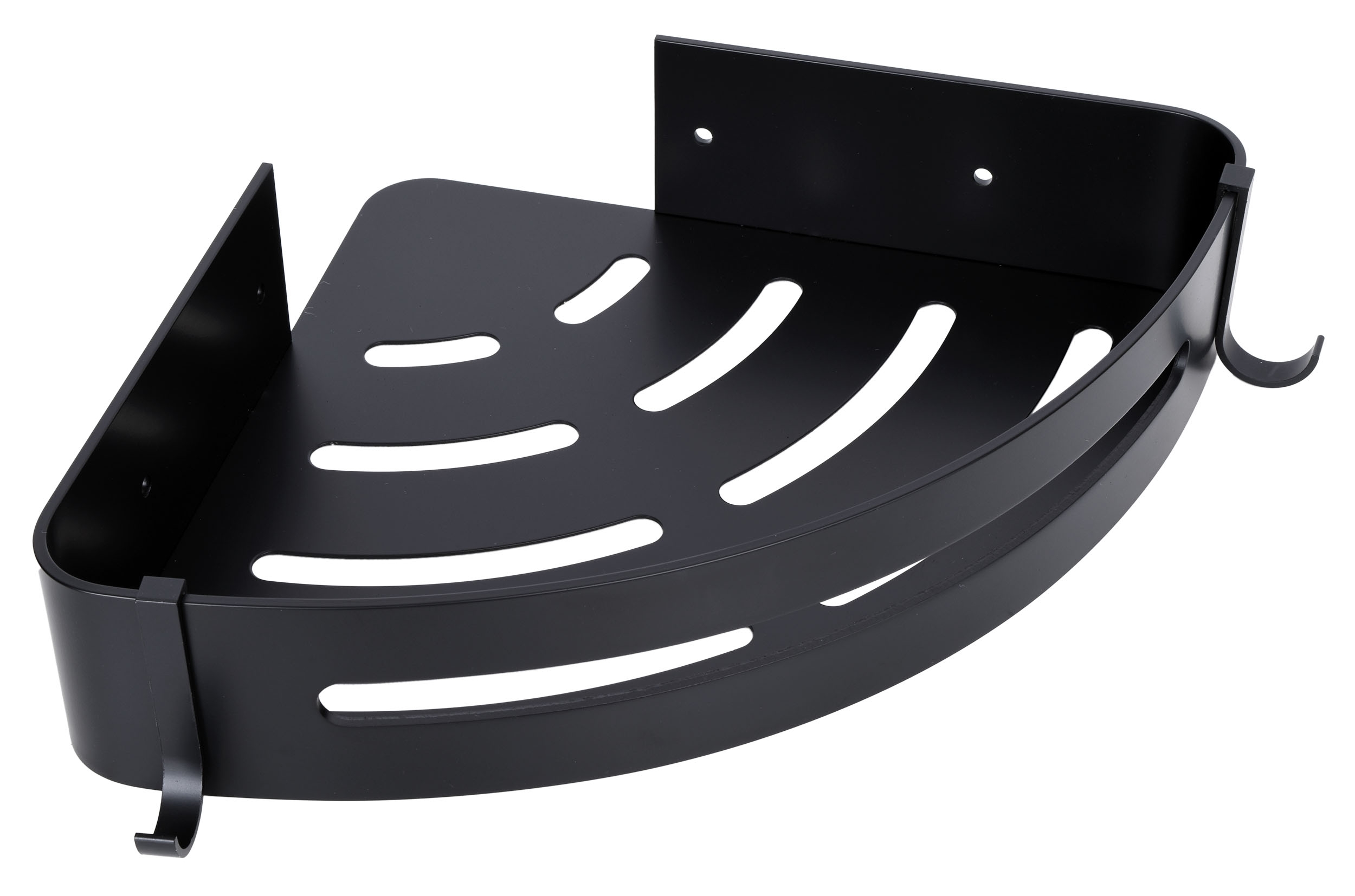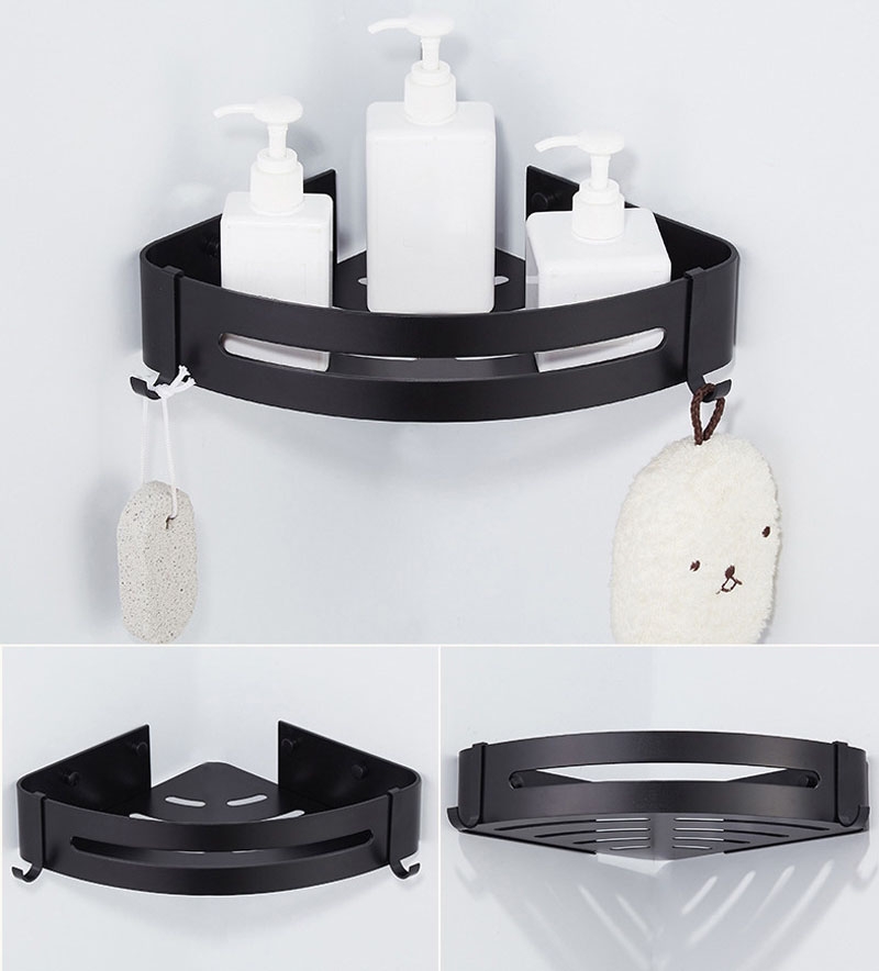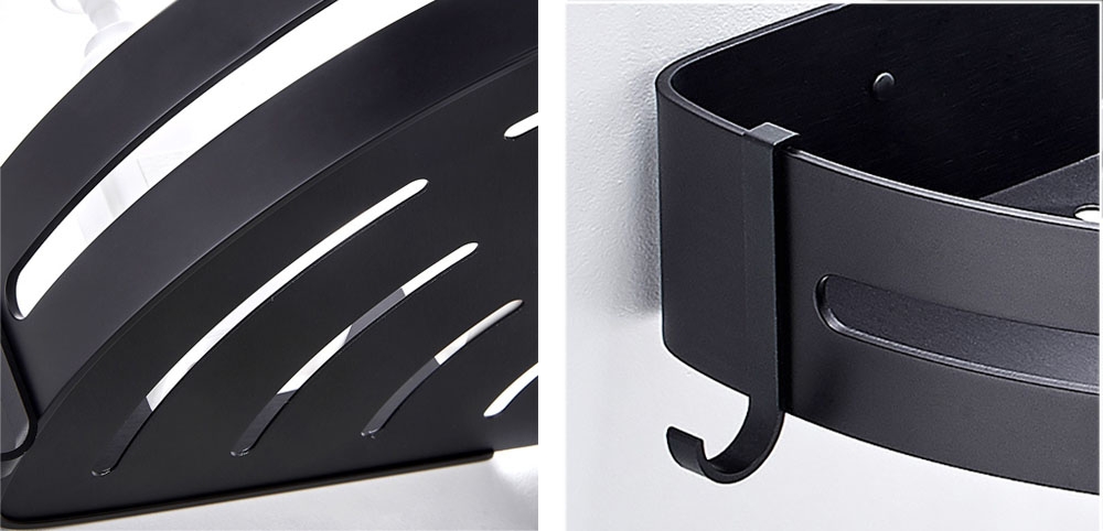Półki łazienkowe Myzea wykonano z aluminium najwyższej jakości i z zachowaniem dbałości o najmniejsze detale. Półki są gładkie, mają zaokrąglone krawędzie i wykończone są na kolor głębokiej matowej czerni. Dodatkowe haczyki ułatwiają korzystanie z myjek i gąbek. Czarny kolor sprawia, że doskonale sprawdzą się w każdej łazience. Idealnie pasują do stylu loftowego.