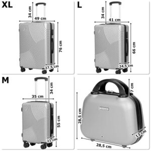 ➡️ Dzięki zestawowi walizek podróżnych Azores możesz zaplanować zarówno krótki wypad, jak i długą podróż, nie martwiąc się o brak miejsca na bagaż. Elegancki, srebrny design i wytrzymała konstrukcja z ABS gwarantują nie tylko stylowy wygląd, ale także odporność na uszkodzenia. Cztery obrotowe kółka zapewniają pełną mobilność, a aluminiowy, wysuwany uchwyt umożliwia wygodne prowadzenie walizek po każdej powierzchni. Kupując zestaw Azores, zyskujesz pełen komfort w podróży.