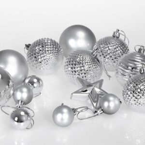Zróżnicowane kształty i rozmiary bombek sprawią, że Twoja choinka będzie emanować świątecznym ciepłem. Kolor srebrny dodaje elegancji, nadając wnętrzu wyjątkowego charakteru.