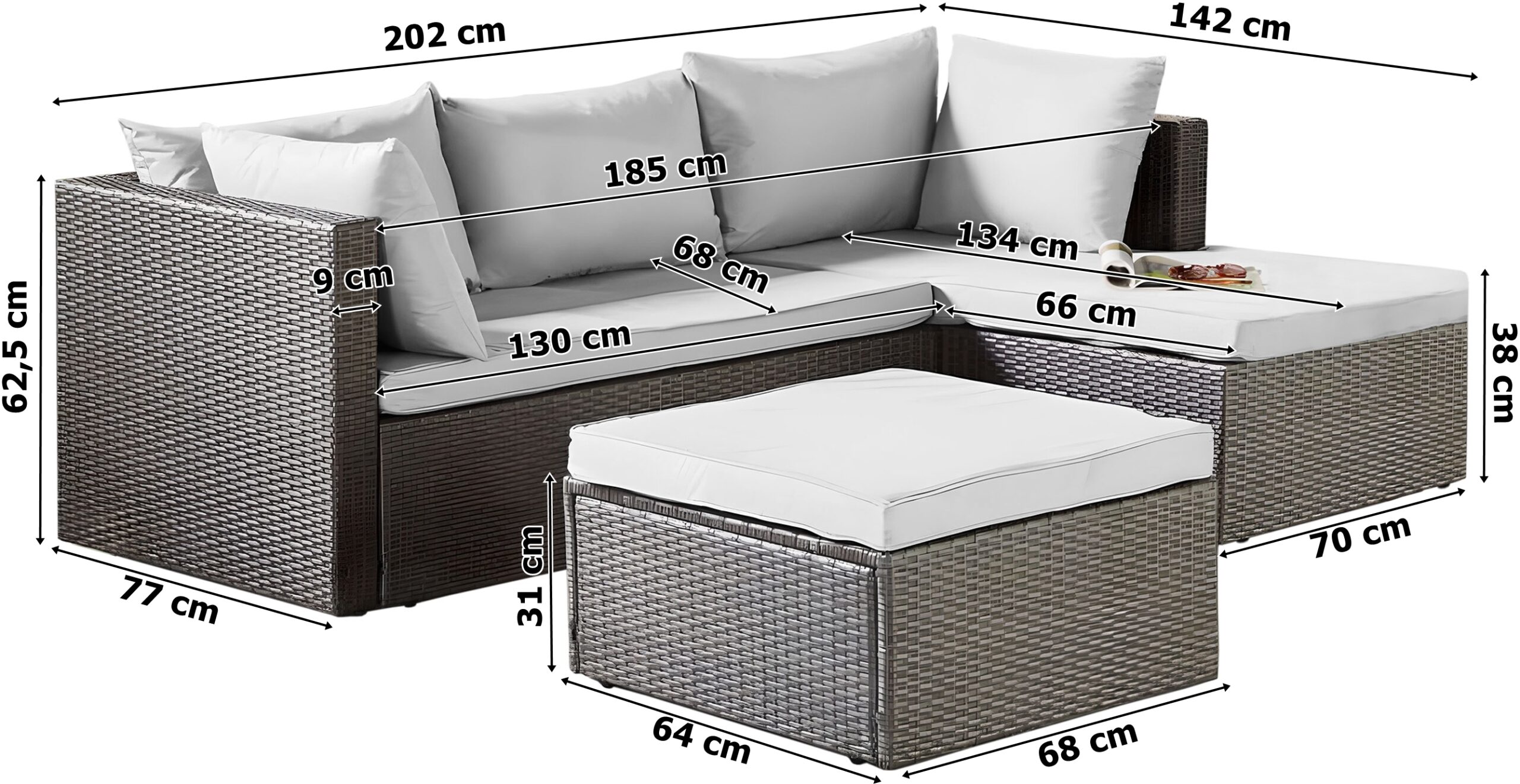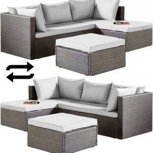 ✅ Wytrzymałość materiału: Zestaw wykonany jest z technorattanu, który jest odporny na warunki atmosferyczne i łatwy w utrzymaniu. Technorattan doskonale imituje naturalny rattan, zachowując przy tym swoje właściwości przez długi czas.