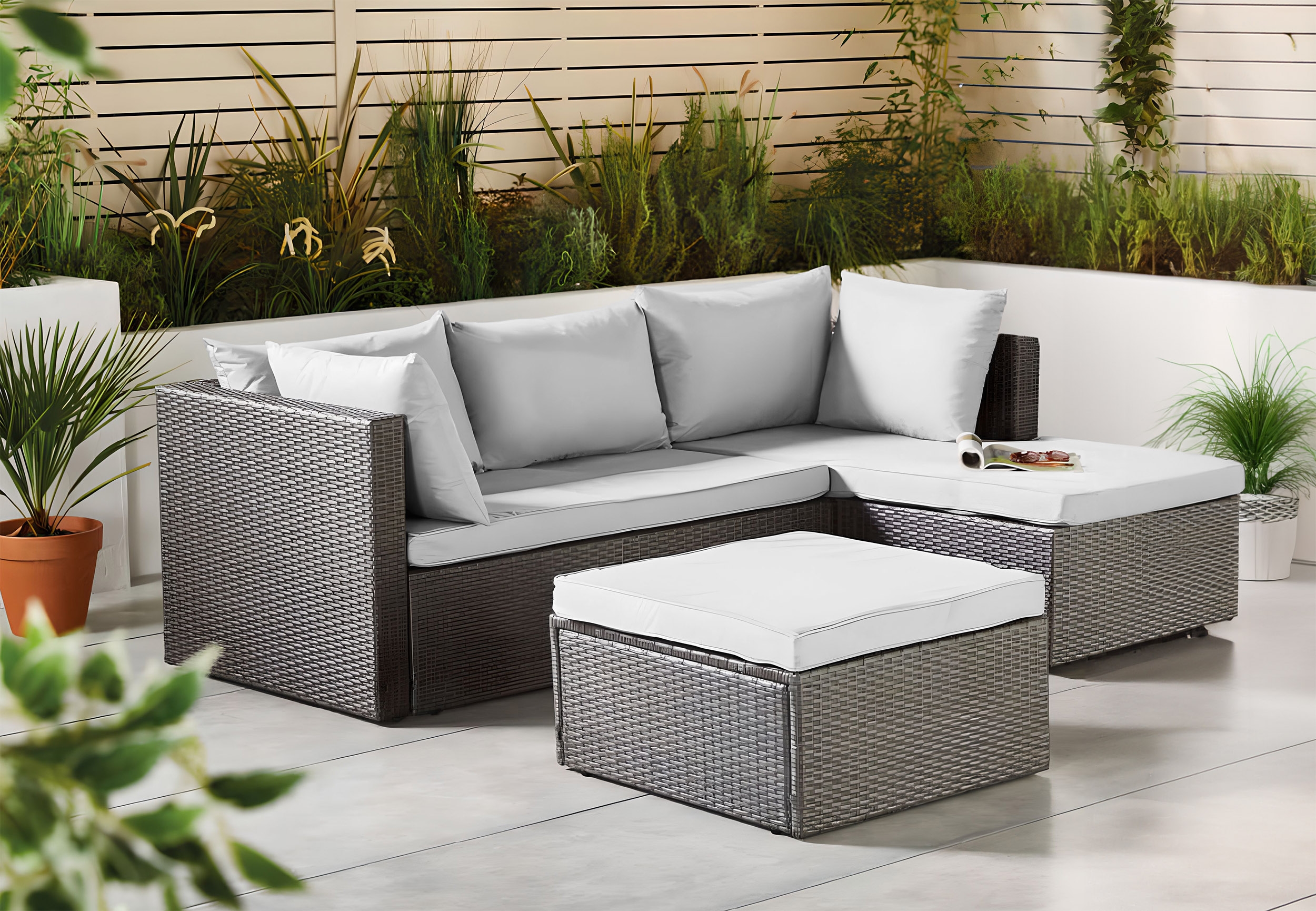 Zestaw mebli ogrodowych FLORENCJA szary sofa otomana