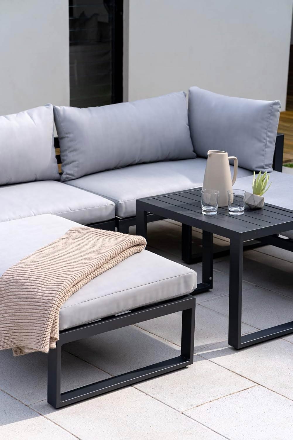 Stwórz stylową i wygodną przestrzeń w swoim ogrodzie dzięki zestawowi mebli ogrodowych Santo szary.