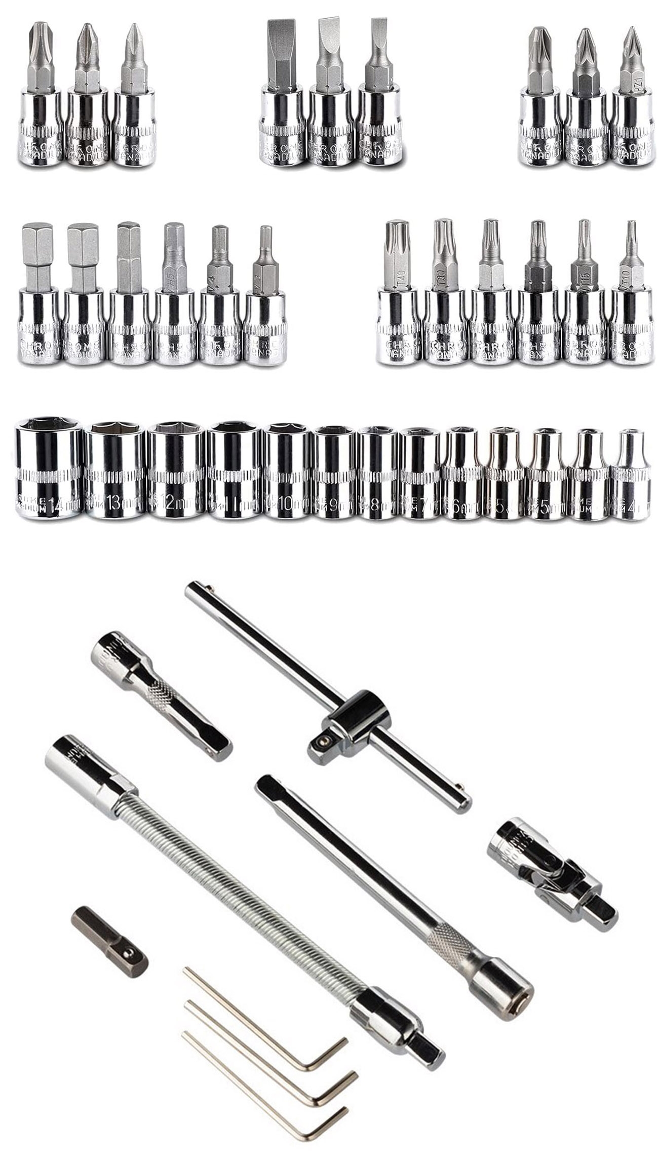 Zestaw narzędzi kluczy nasadowych bity torx 46 elementów
