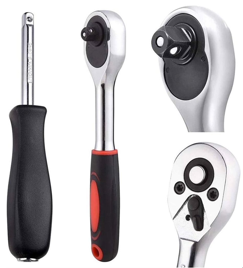 Zestaw 46 kluczy wykonanych ze stali crv oraz chromowo-wanadowej obrabianej cieplnie.