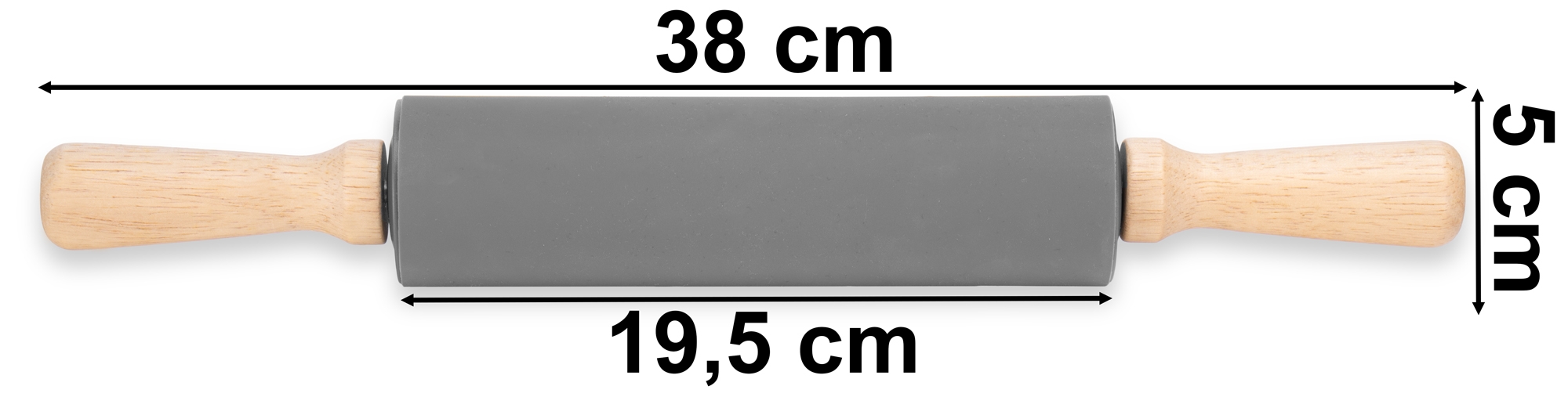 Wałek: długość całkowita – 38 cm, średnica – 5 cm, długość wałka – 19,5 cm, długość rączek bambusowych – 9 cm