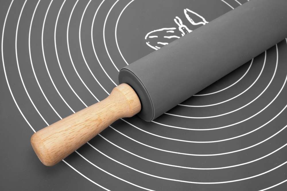 Materiały użyte: silikon (stolnica), drewno bambusowe (wałek)