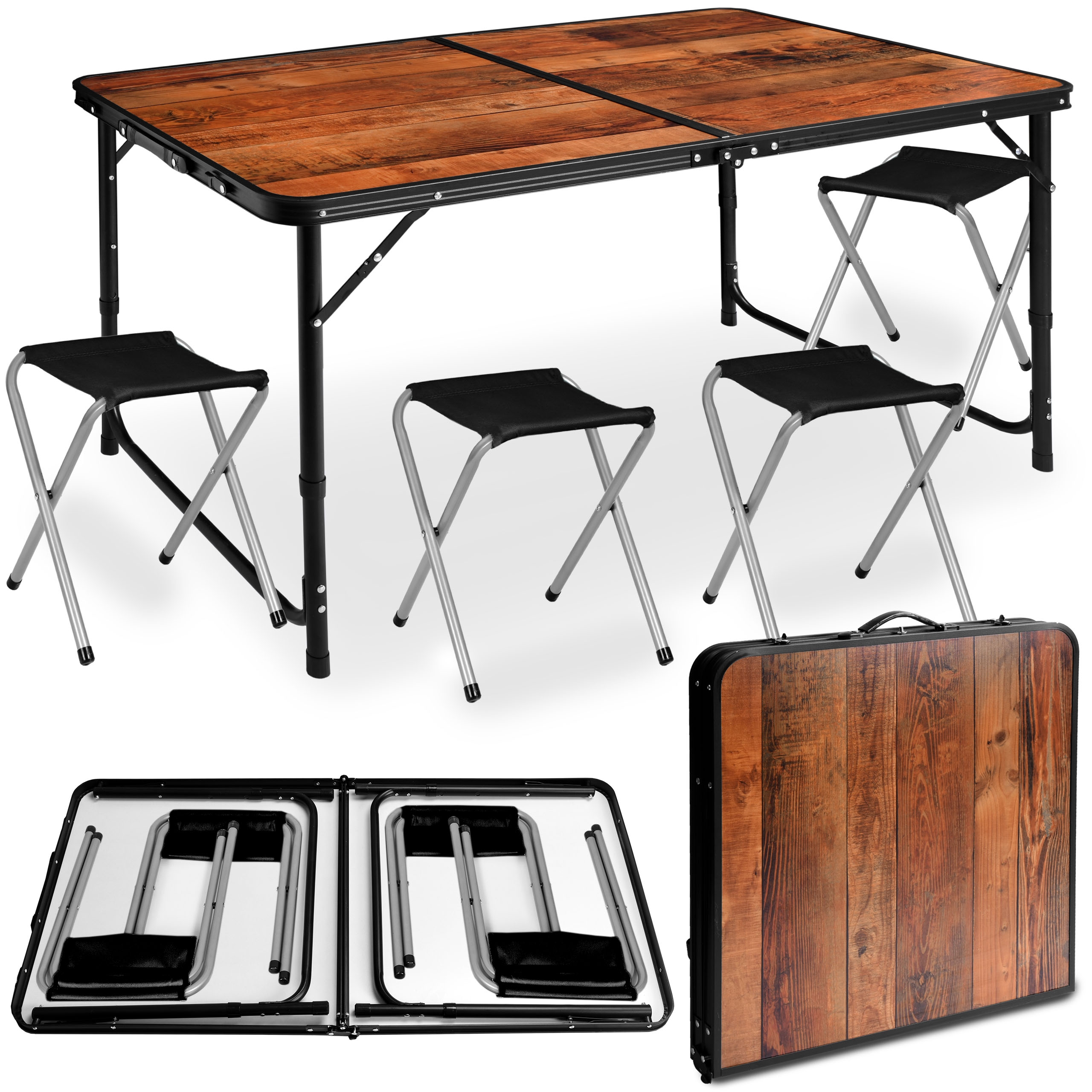 Kup teraz kempingowy stół turystyczny o nowowczesnym designie, z trzypoziomową regulacją wysokości. Stół składa się z aluminiowego stelaża oraz blatu z płyty MDF wysokiej jakości. Zastosowane materiały gwarantują niską wagę 4kg i dodatkowo łatwy transport. Stolik bardzo łatwo się rozkłada i składa do postaci walizki.